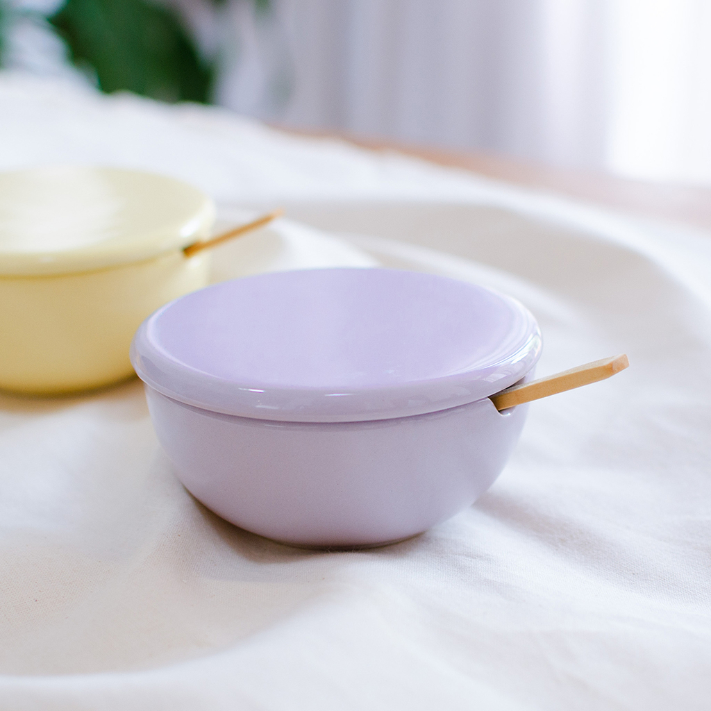 Colores: blanco, amarillo, verde, rosa, lavanda, piedra y negro satinado (la tapa y el cuenco son del mismo color).